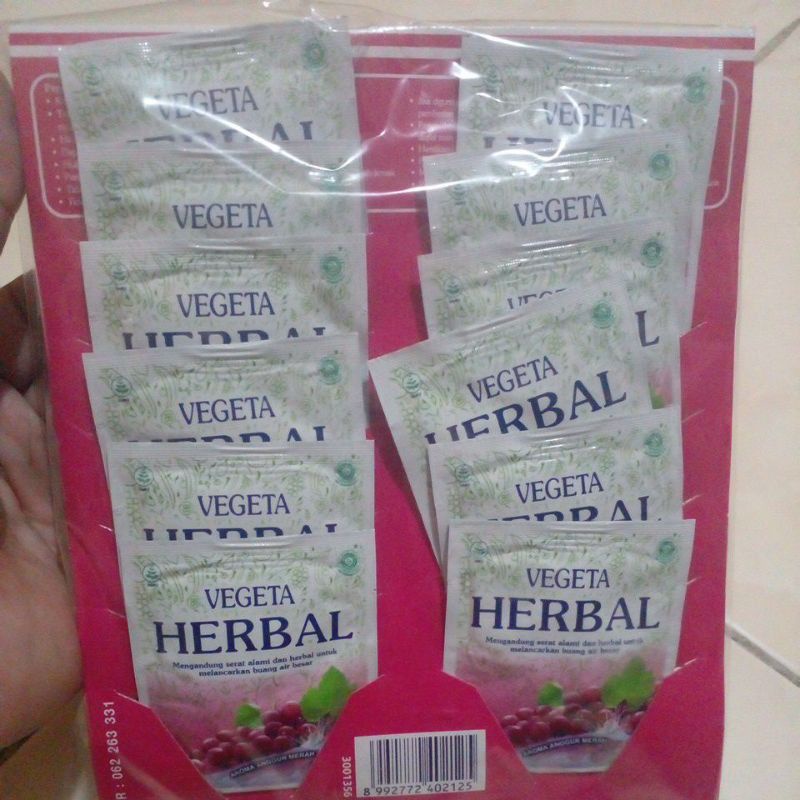 Vegeta herbal mengandung serat alami dan herbal untuk melancarkan buang air besar.