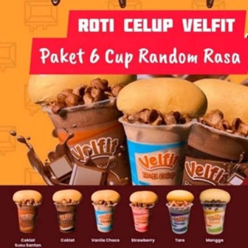 Es Roti Celup adalah minuman dan roti yang lagi viral di Indonesia, banyak penjual yang mendapatkan keuntungan besar dengan berjualan es roti celup . maka dari itu kami membuat produk yang dapat dijual lagi atau dikonsumsi sendiri tanpa harus keluar rumah membeli es roti celup. Dalam es roti celup merk Velfit terdapat serbuk rasa yang bisa langsung diseduh dan roti yang siap saji.