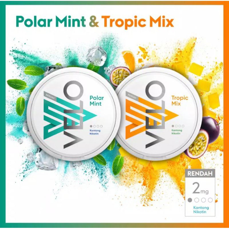 VELO adalah kantong nikotin yang dapat kamu gunakan kapan saja di mana saja. Tersedia dalam 3 varian yang sesuai dengan kebutuhan dan selera kamu! Kantong VELO terbuat dari serat eukaliptus dari Skandinavia (Swedia), kandungan nikotin, air, dan zat perisa. Semua komposisi VELO aman untuk digunakan.