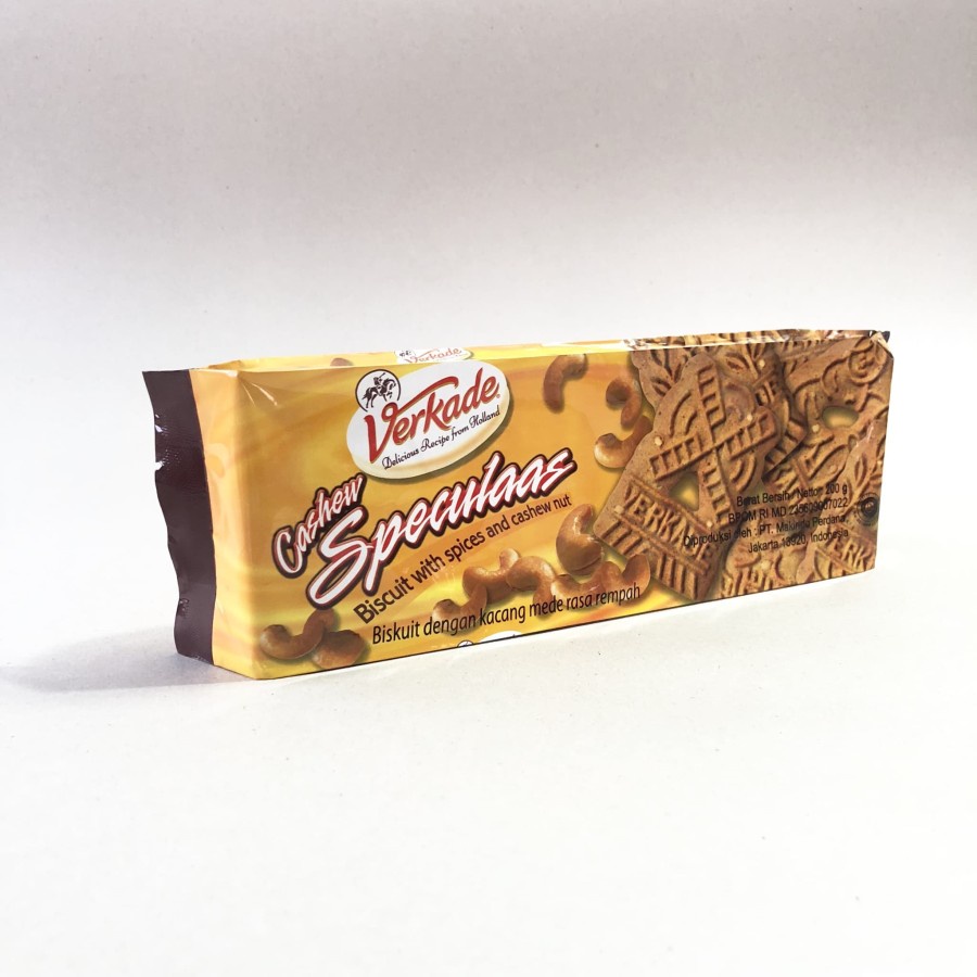 Verkade Speculaas Cashew Small Pack- 100gr merupakan biscuit rempah premium bertabur kacang mede ala Holland dengan rasa butter Detail produk :