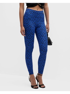 VERSACE Женские синие леггинсы с высокой талией, Синий, 10039001A01612
