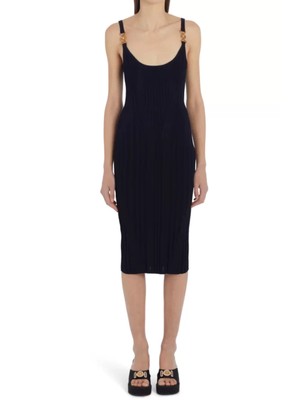 VERSACE Женское черное текстурированное вечернее платье-футляр миди без рукавов с круглым вырезом, Черный