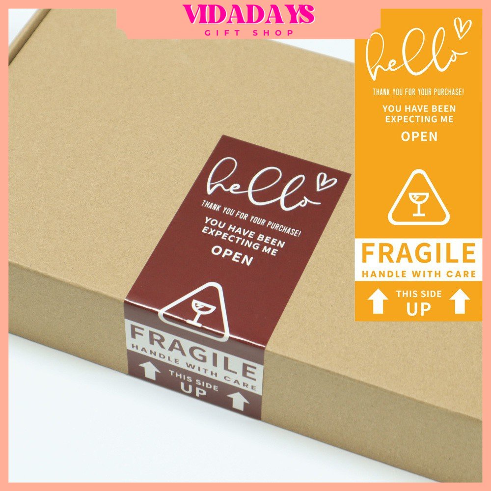 VIDADAYS [50Pcs/Pack] Sticker Hello Open Me Fragile Handle With Care Stiker Packaging