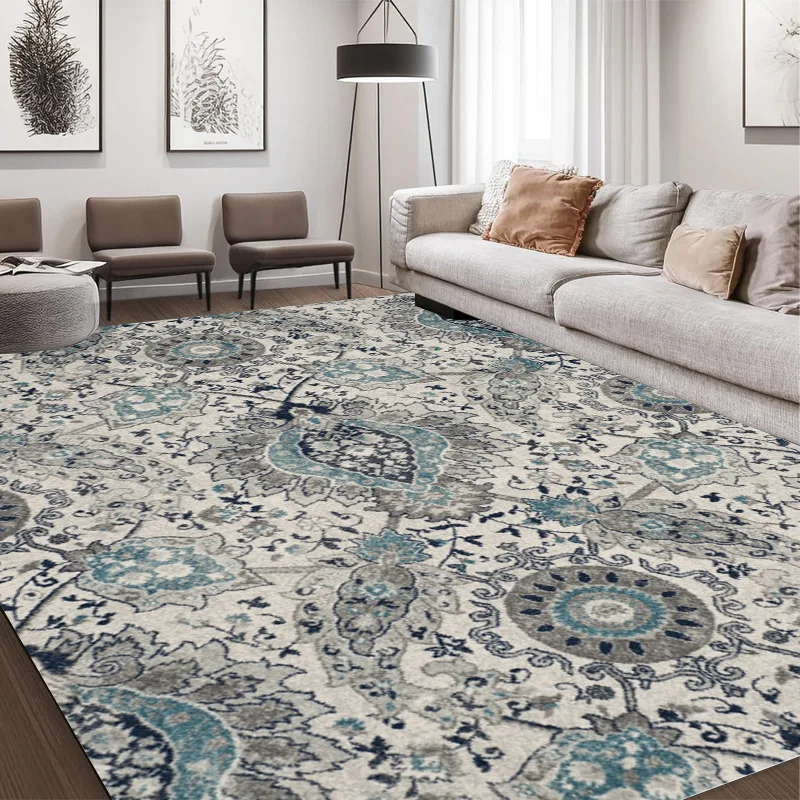 VIKAMA Retro Persian Pattern Living Room Rug, Light Luxury Non-Slip Wear-Resistant, Modern Home Decor Mat - Home Decoration