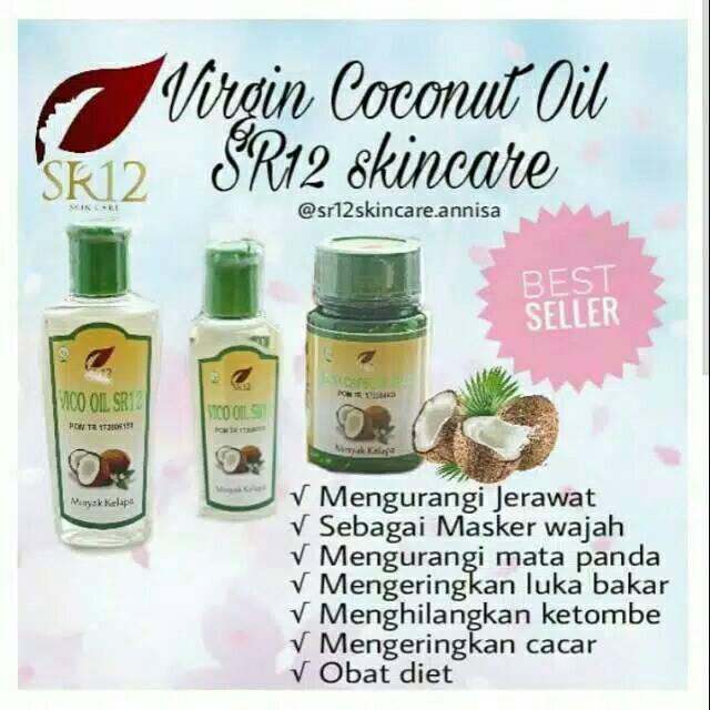 Minyak VCO adalan sejenis minyak yang diproses dari sari kelapa segar dengan istilah minyal kelapa murni 100% tanpa bahan kimia.VCO memiliki banyak manfaam untuk kesehatan dan kecantikan antara laim sebagai minuman kesehatan yang secara tradisional dapat mengobati diabetes dan menekan pertumbuhan bakteri serta virus dangan meningkatkan kekebalan tubuh.VCO dalam dunia kecantikan sebagai anti aging alami,antioksdan,dan mengobati jerawat,melembabkan kulit,anti iritasi dan dapat membakar lemak tubuh sehingga tubuh langsing,sehat,dan memiliki kulit yang bercahaya.VCO RS12 merupakan minyak kelapa murni dengan kualitas baik.