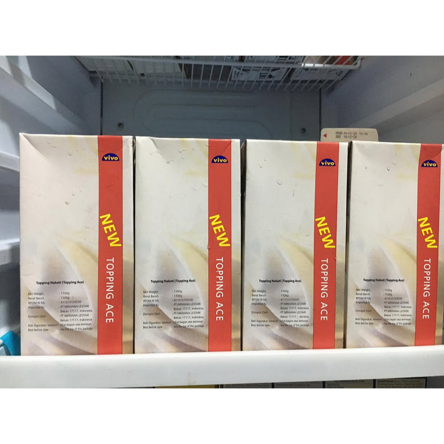 Vivo Topping Ace adalah produk whipping cream yang telah disesuaikan dengan keadaan iklim Indonesia sehingga stabil.Mohon disimpan dalam chillerNotes: kerusakan dalam pengiriman di luar tanggung jawab kami, kami pastikan dalam pengiriman packaging dan juga isi dalam kondisi bagus
