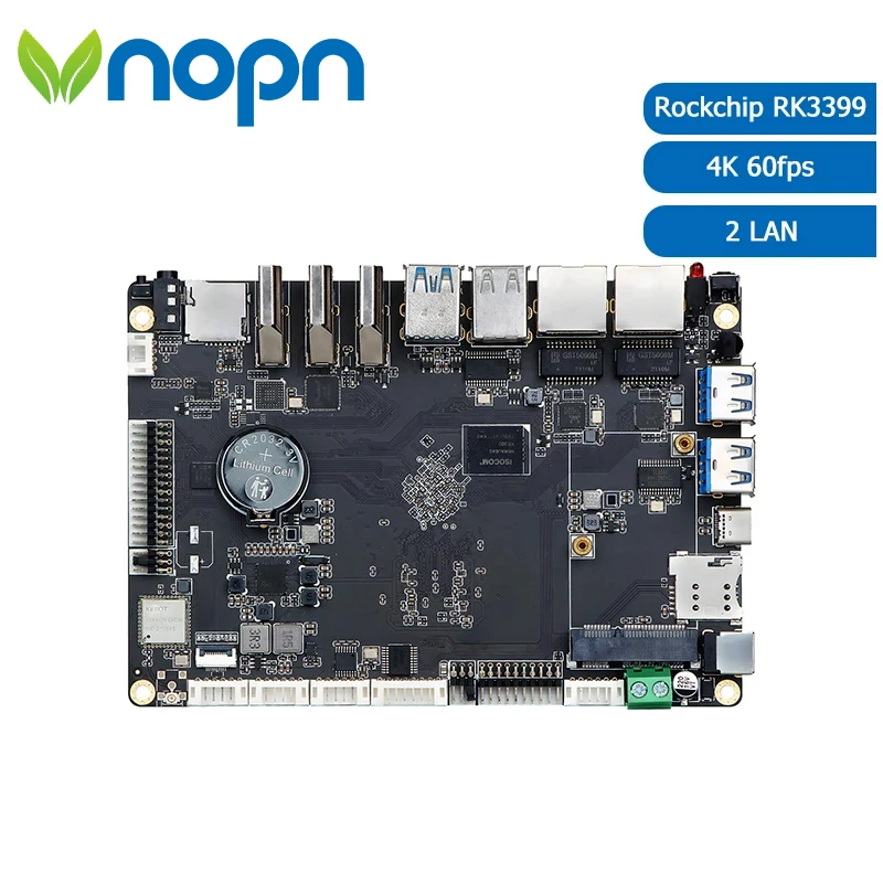 VNOPN Rockchip RK3399 (Cortex-A72+A53) ARM Embedded Industrial IoT Motherboard 2 LAN 2 HDMI Dual Display Android 4K@60GHz