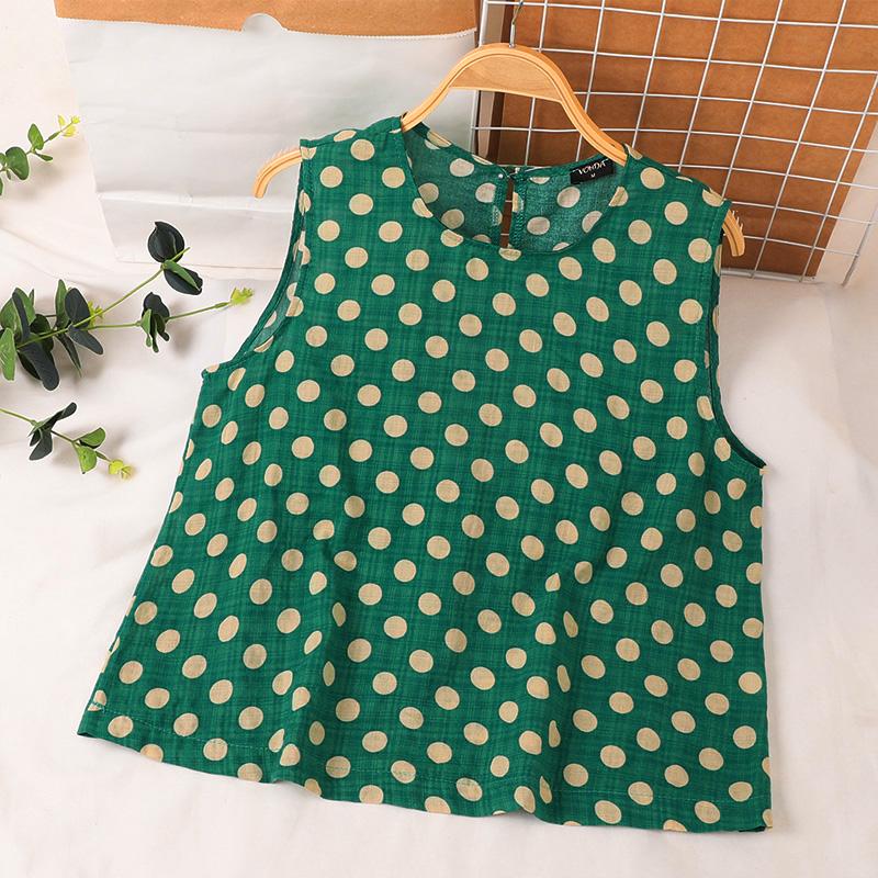 VONDA Женские летние свободные майки с круглым вырезом и без рукавов в горошек 5XL зелёный