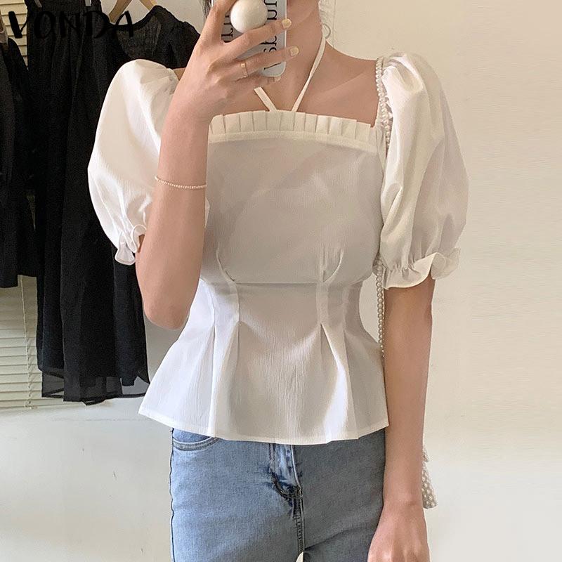 VONDA Женщины Летний пышный рукав Квадратный воротник Блузка