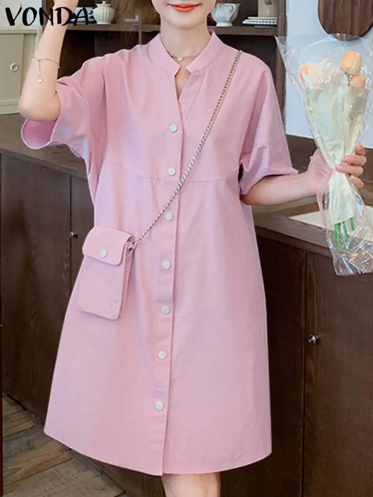 VONDA женское однотонное платье 2023 летнее элегантное модное свободное Повседневное платье с коротким рукавом женское мешковатое платье