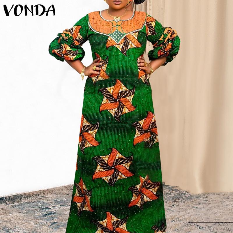 VONDA женское свободное прямое длинное платье больших размеров с круглым вырезом и длинным рукавом с цветочным принтом