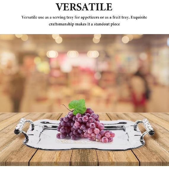 VOSAREA Поднос сервировочный из нержавеющей стали Прямоугольный металлический сервировочный поднос Поднос для подачи турецкого чая и кофе Ручка Декоративное сервировочное блюдо Антикварная столовая