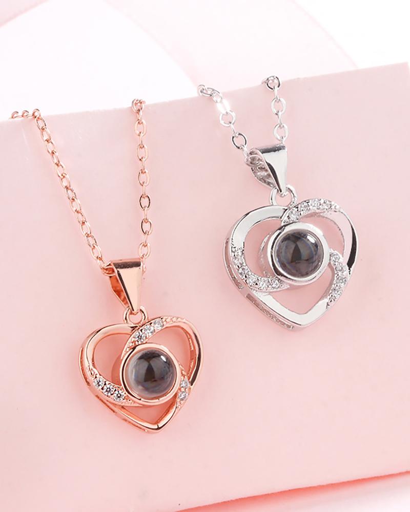 Valentine's Day Rhinestone Heart Pattern Pendant Chain Necklace, Gold