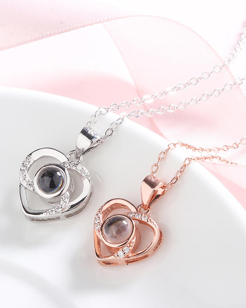 Valentine's Day Rhinestone Heart Pattern Pendant Chain Necklace, Silver