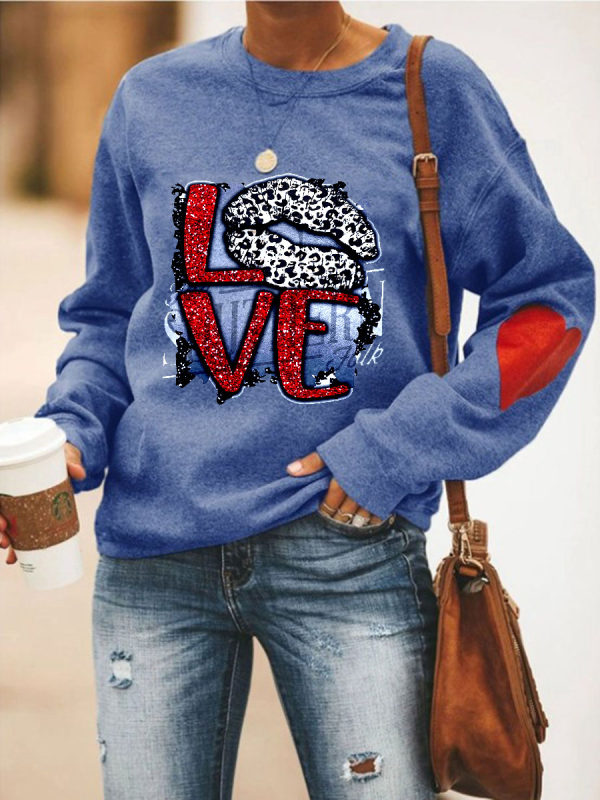 sweatshirts,valentines day limited printed round neck loose sweatshirt