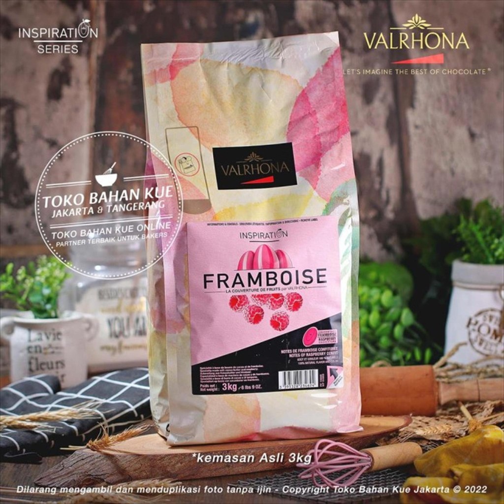 Valrhona Cokelat Inspiration Framboise Raspberry 3kg Pack ASLI Couverture Chocolate Baking Rasa Raspberry