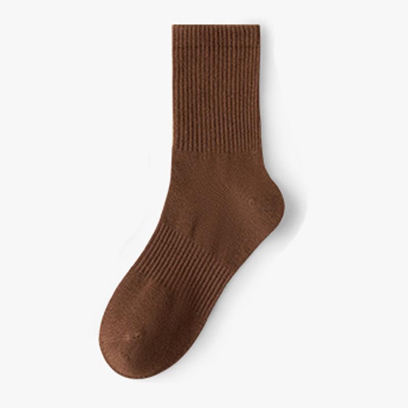[Value Pet Powder] 5 пар носков, носки средней длины из чистого хлопка, впитывающие пот и дезодорирующие чулки, универсальные и высококачественные носки One Size кофейный
