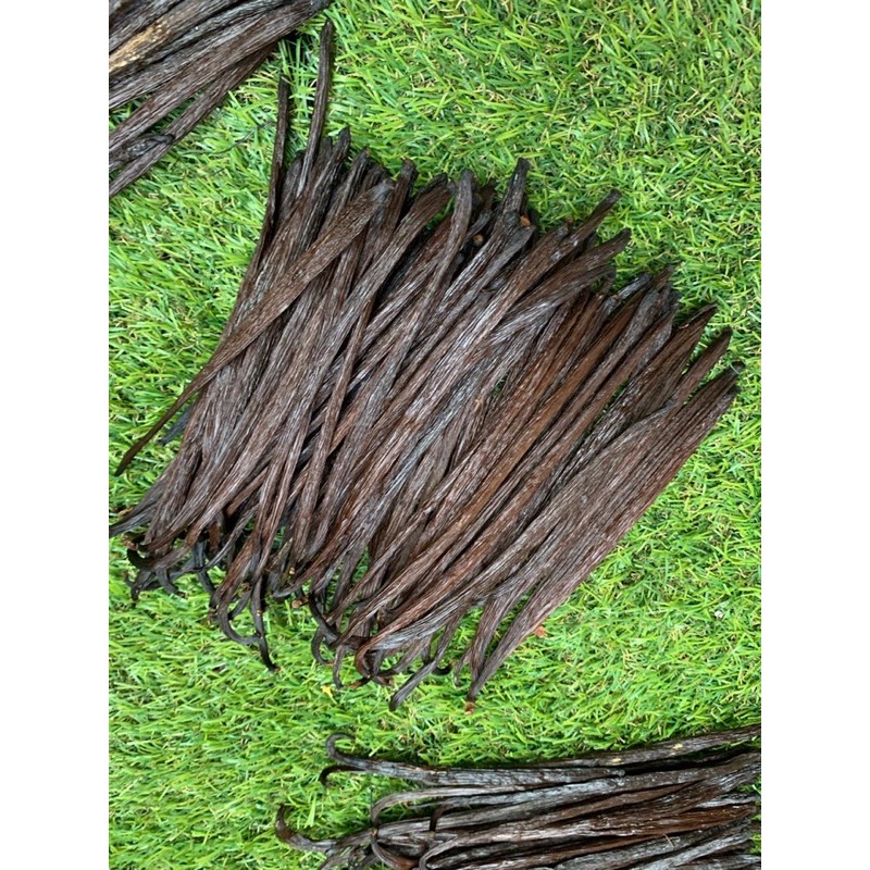 vanilla bean asli indonesia dengan kadar air rendah dan berminyak, mempunyai aroma yg sangat kuat dengan warna hitam kecoklatan.