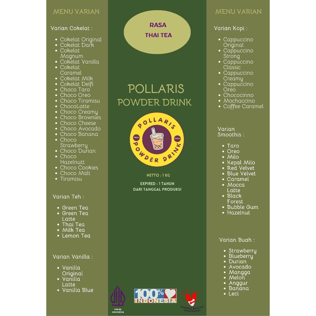 Pollaris Powder Drink ( bubuk minuman kekinian ) merupakan solusi tepat bagi anda yang ingin menghadirkan minuman kekinian yang berkualitas untuk usaha Anda. Produk ini cocok untuk digunakan di kafe, hotel, restoran, maupun usaha minuman modern lainnya. Pollaris powder drink diproduksi dengan menggunakan bahan-bahan yang sangat berkualitas sehingga menghasilkan rasa dan aroma unggul. Anda dapat memilih dari 58 varian rasa yang tersedia sesuai dengan selera dan keinginan pelanggan.