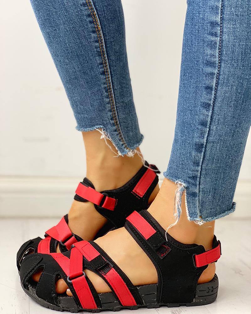 Velcro Design Cutout Flat Sandals, Red
