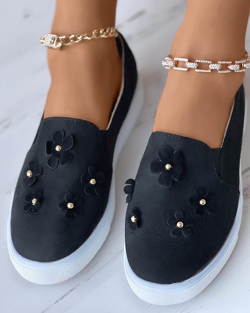 Velvet Floral Pattern Slip On Sneakers, Black