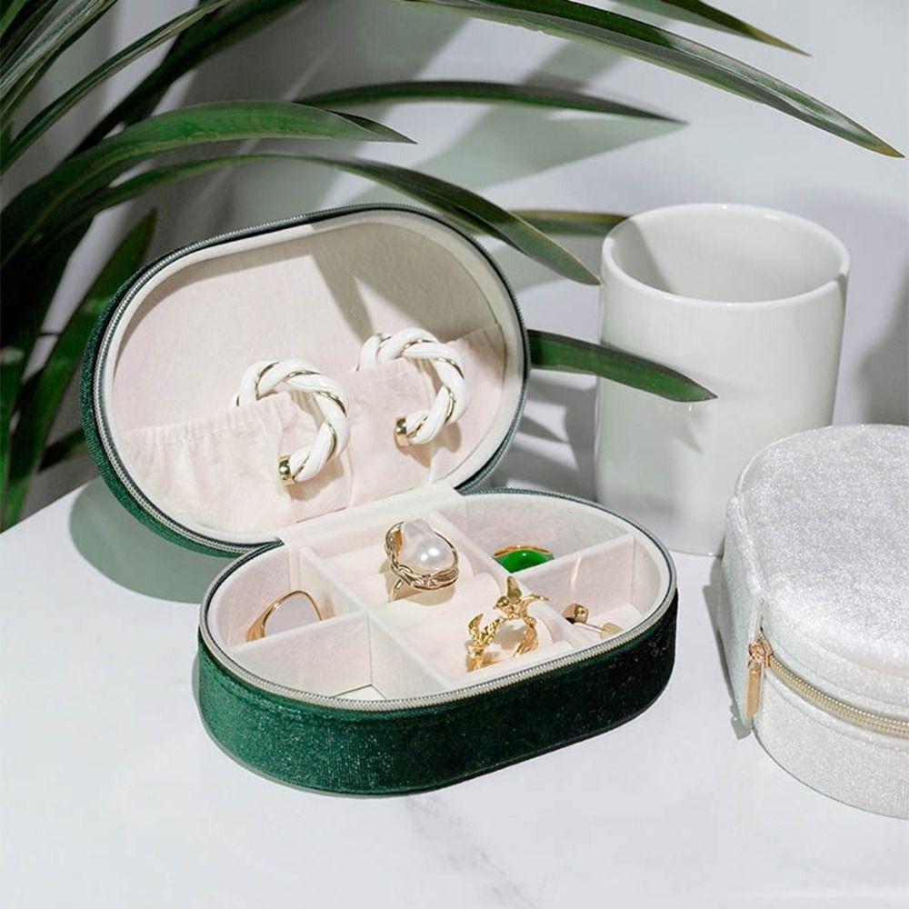 Velvet Jewelry Zipper Box Flip Cover Necklace Earring Organizer Simple Oval Jewelry Box Ring розовый