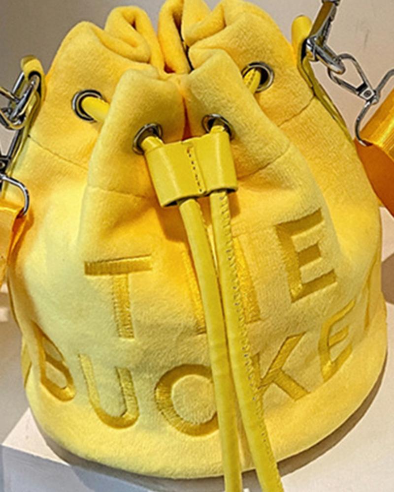 Velvet Letter Pattern Drawstring Bucket Bag, Yellow