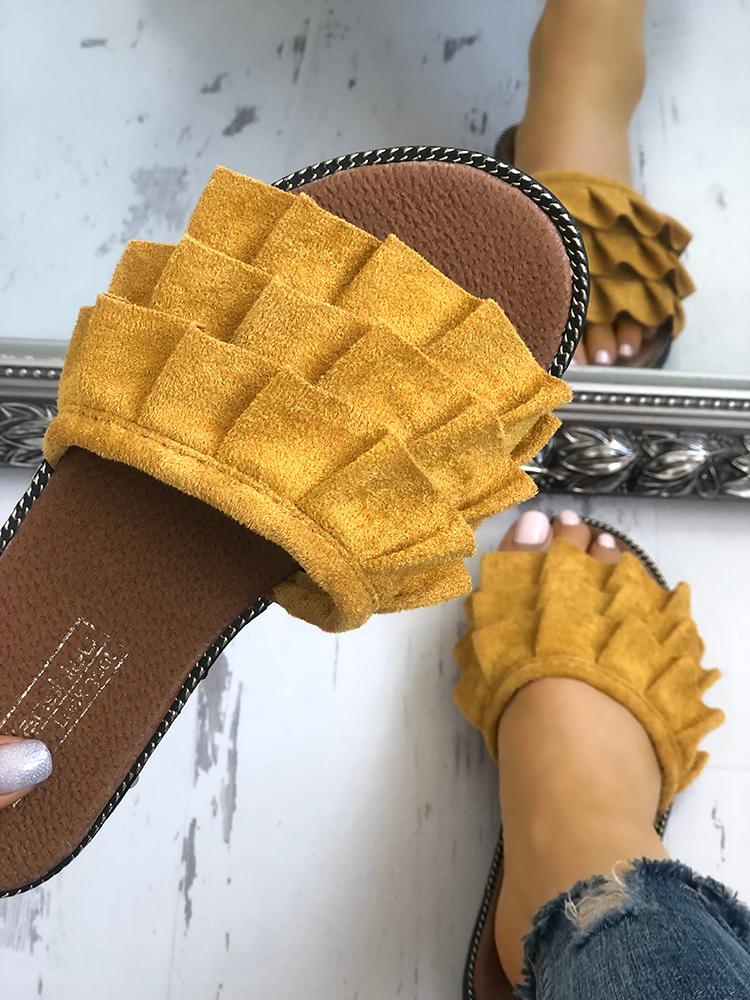 Velvet Ruffles Layered Non-Slip Slippers, Yellow