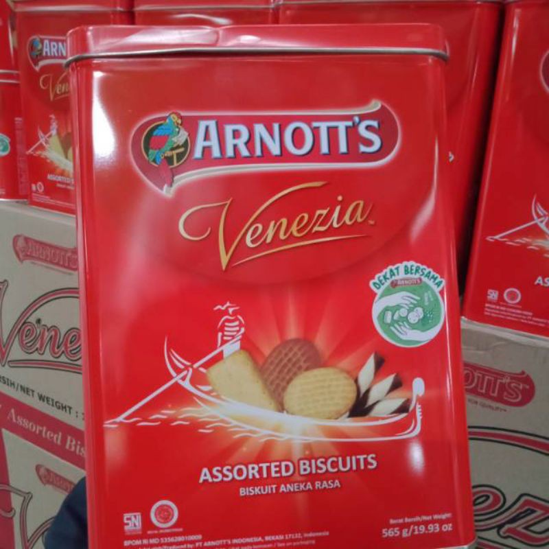 bismillahirrahmanirrahim tersedia open order Venezia biscuit tin 565 gr ready stok banyak harga terjangkau expired date Apr 2022