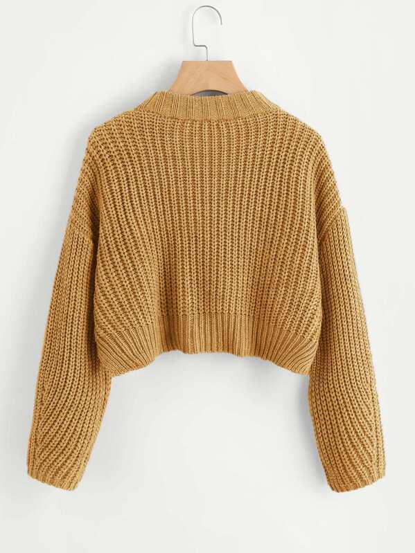 Vented Hem Chunky Knit Crop Jumper, Yellow