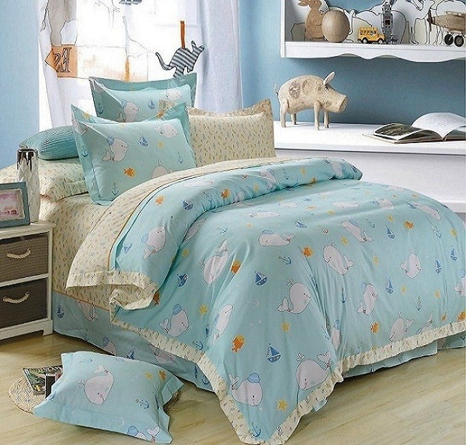 Комплект постельного белья Киты на голубом CottonTwill 1.5-спальный 150х220 см Сатин Люкс Elite (СКЕ0022-3)