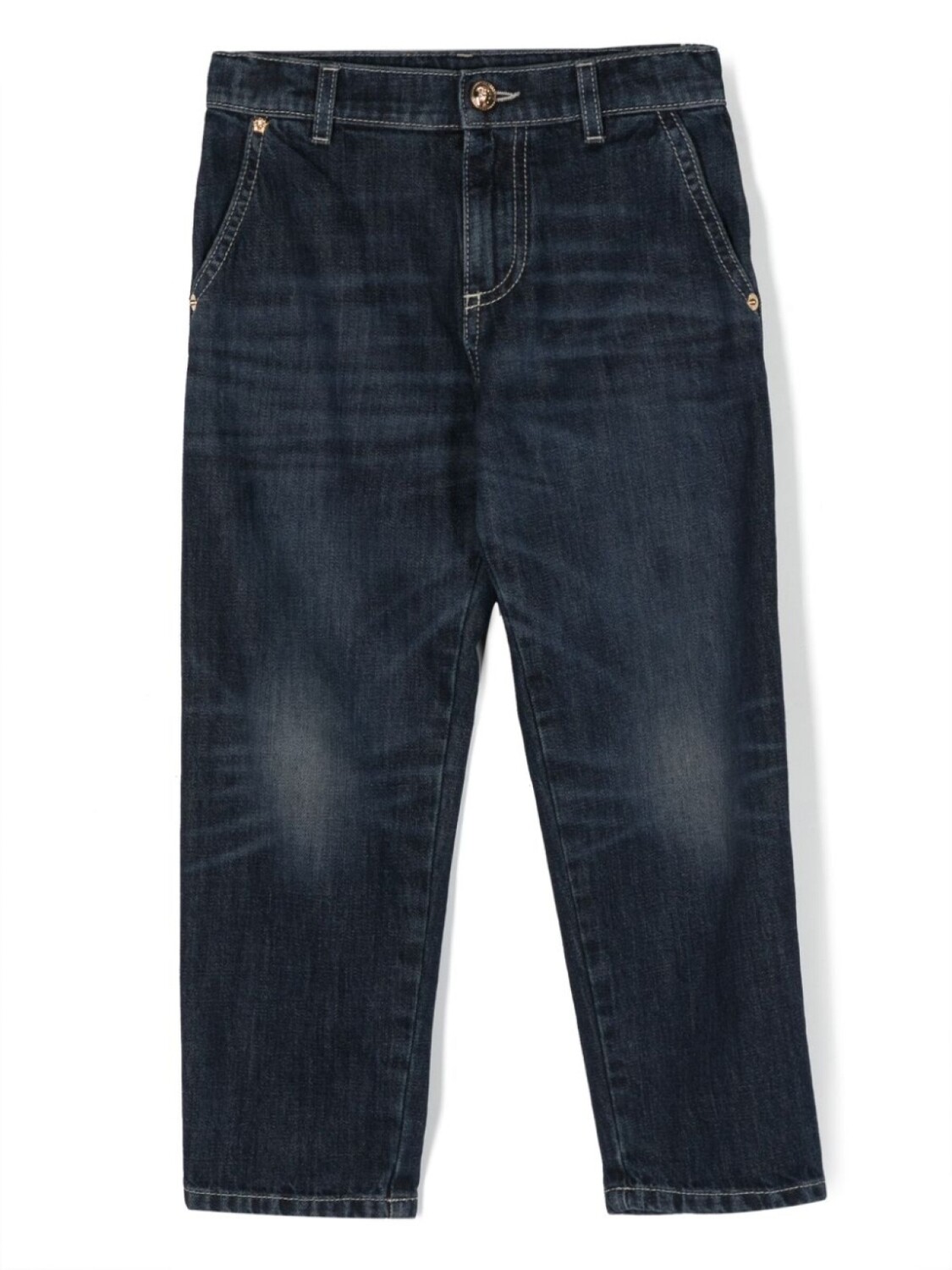 Versace Kids прямые джинсы с вышитым логотипом, синий