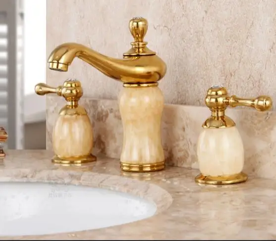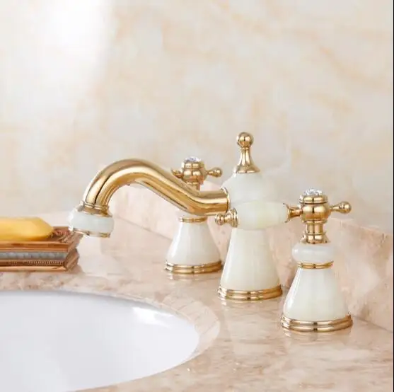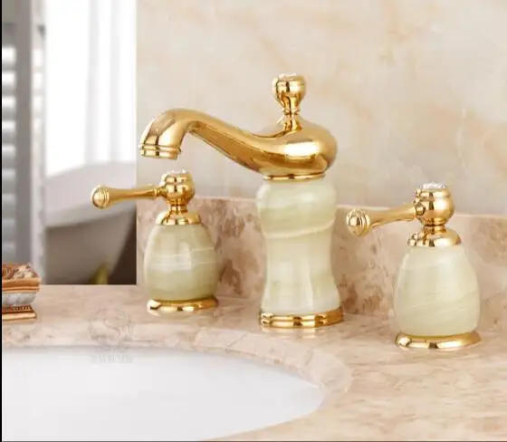 Vidric модный смеситель для раковины из нефрита и латуни с золотой отделкой, широкий смеситель для раковины, смеситель для раковины с 3 отверстиями