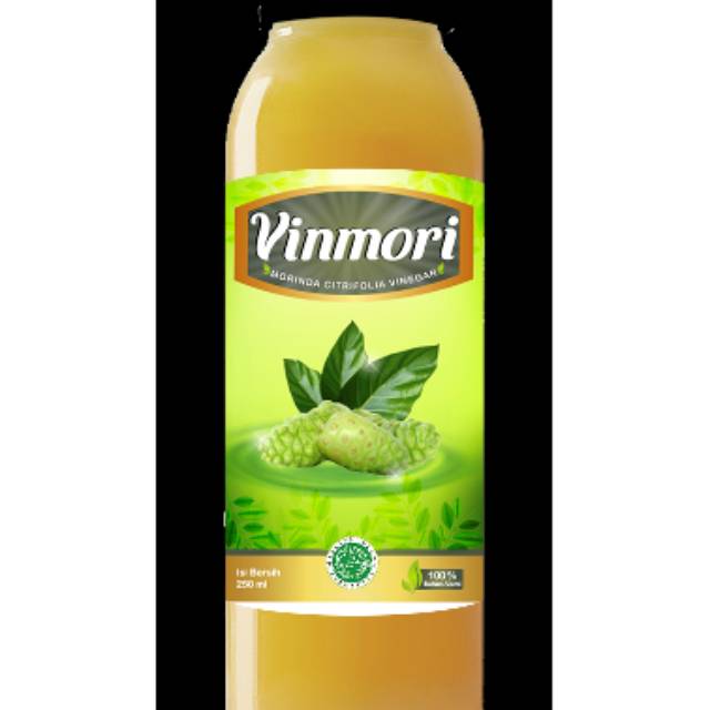 Cuka mengkudu Vinmori diekstrak dari buah mengkudu jenis Morinda citrifolia yang dipetik dari pegunungan yang bebas polusi lingkungan.