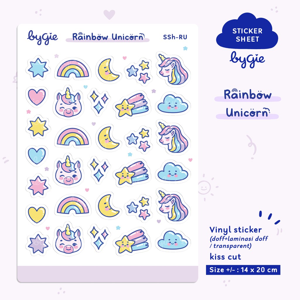 Vinyl Sticker Sheet - Rainbow Unicorn