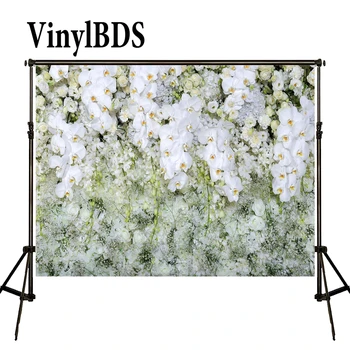 VinylBDS Outdoor Wedding Background Cloth White Flower Wall Photo Spring Scenic Photography Backdrops Customize Seamless Photo