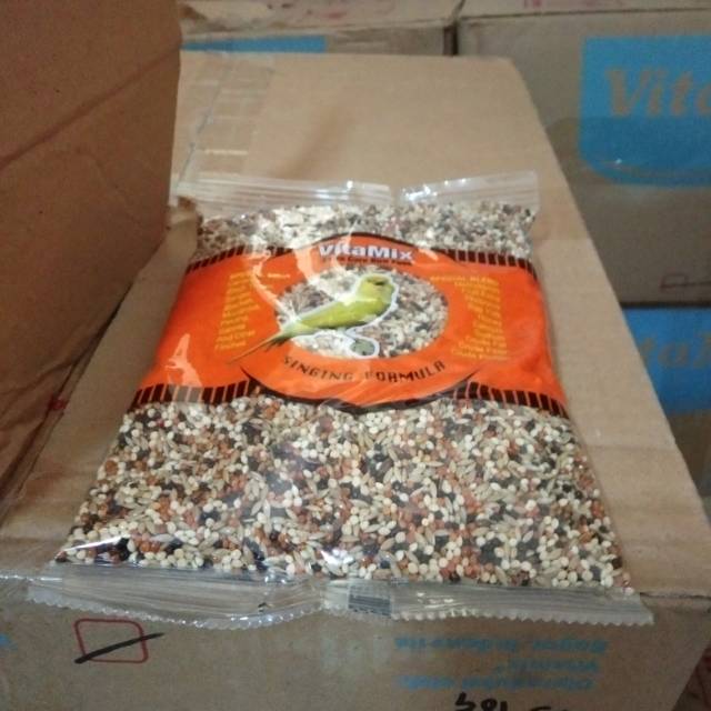 Nama produk : Vitamix Phoenix Pakan Burung Kenari Kategori : Pakan/food Kegunaan: Meningkatkan daya tahan tubuh burung supaya tidak mudah stres Menjaga agar tetap fit Supaya nafsu makan bertambah Tidak mudah saki Selalu berkicau (singing). Untuk burung jenis: Kenari, Black Throat, Sanger, Blackn, Mozambik, Pakling, Sanma dan Finches. Mengandung bahan: Multivitamin, fruit extra, phoporus, egg yolk, honey, calcium, sodium, crude fat, crude fiber, crude protein. Berat isi : 400 Gr