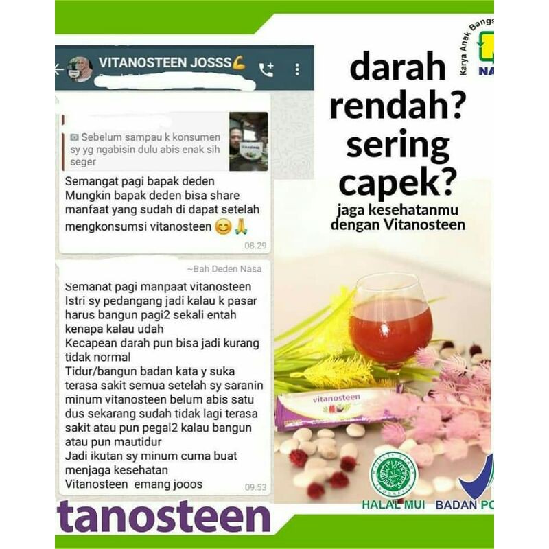 Dengan mengkonsumsi vitanostee setiap hari setelah makan, akan memperlambat bahkan mencegah berbagi macam penyakit