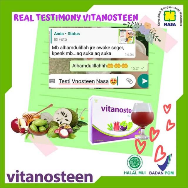 Hmm, selow selow. Mimin ada nih jawabannya. Cukup dengan si kecil cabe rawit Vitanosteen ajah, semua keluhanmu hempas hilang. Badan lebih fresh dan enteng, aktivitas jalan terus.