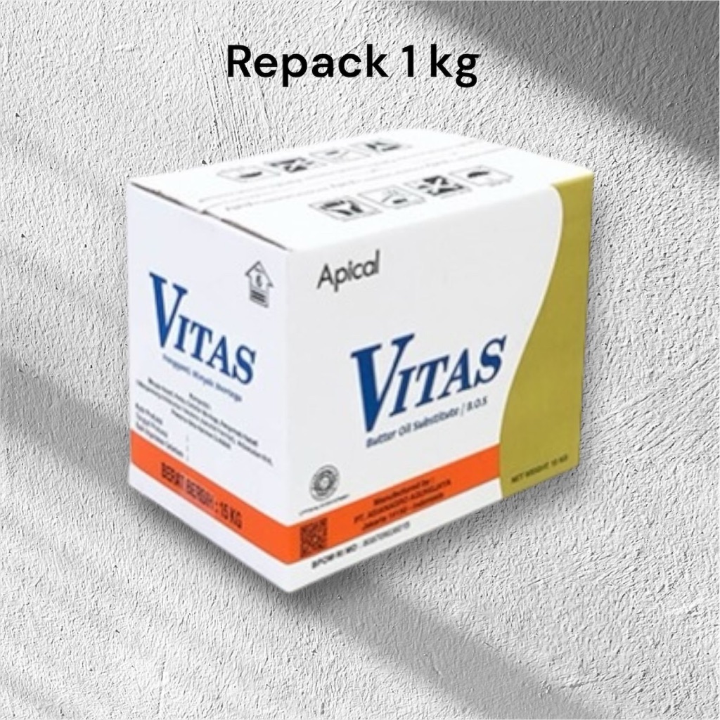 Vitas Butter Oil Substitute merupakan produk hasil olahan lemak nabati yang berfungsi sebagai pengganti margarine rasa mentega yang sangat baik dalam berbagai pembuatan kue, cupcakes, roti manis dan roti berkualitas tinggi.
