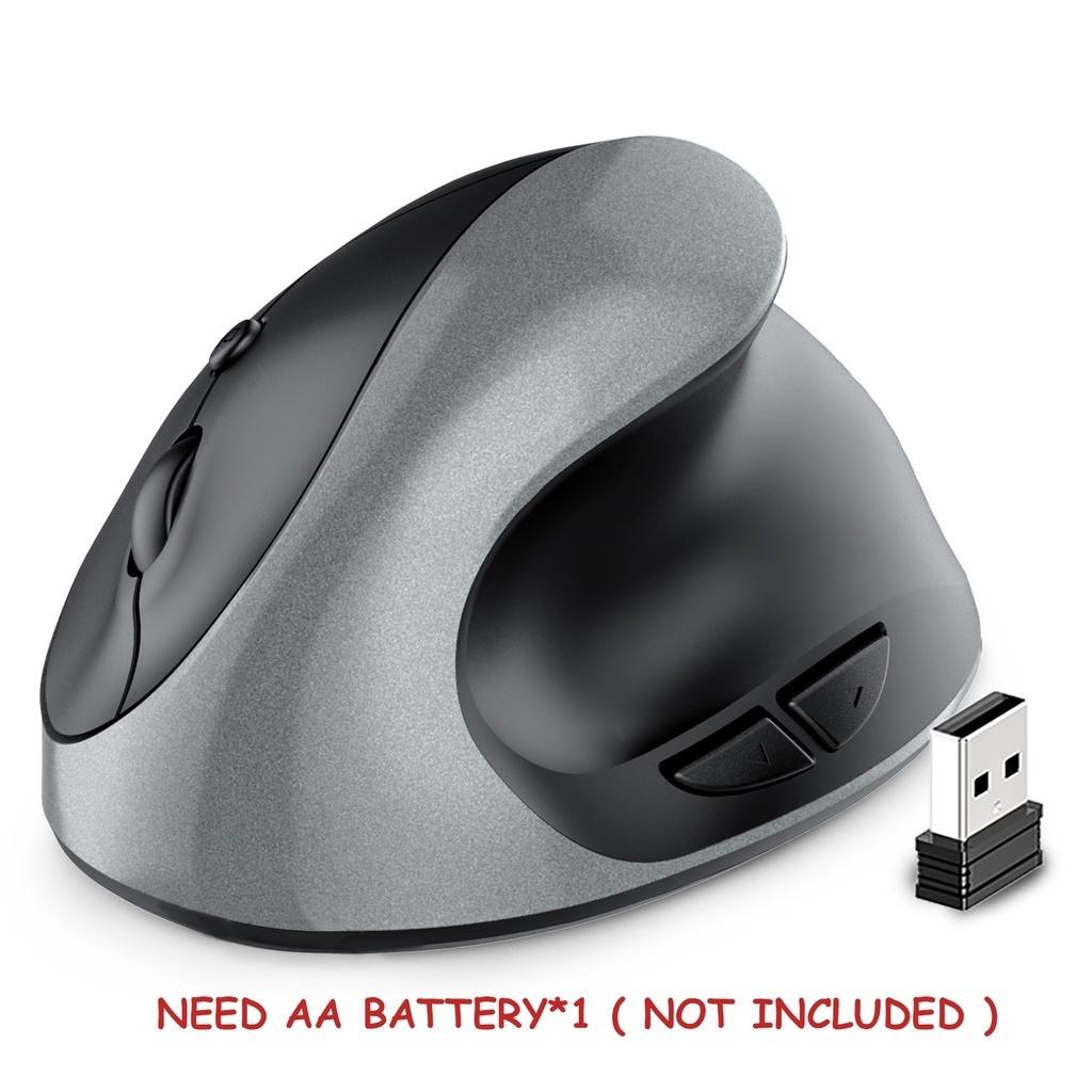 Vogek перезаряжаемая/аккумуляторная вертикальная мышь, беспроводная USB 2,4G, правая эргономичная мышь для компьютера, ноутбука, игровая мышь Gray-AA Battery