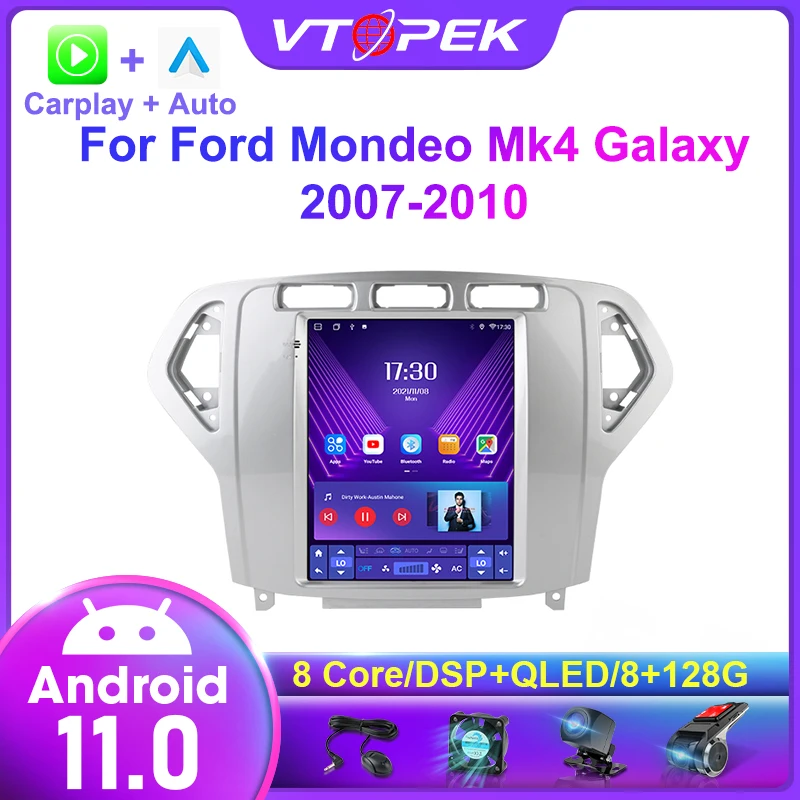 Vtopek Android 11 Carplay автомобильный DVD для Ford Mondeo Mk4 Galaxy A/C 2007-2010 Автомобильный плеер GPS дисплей экран монитор головное устройство