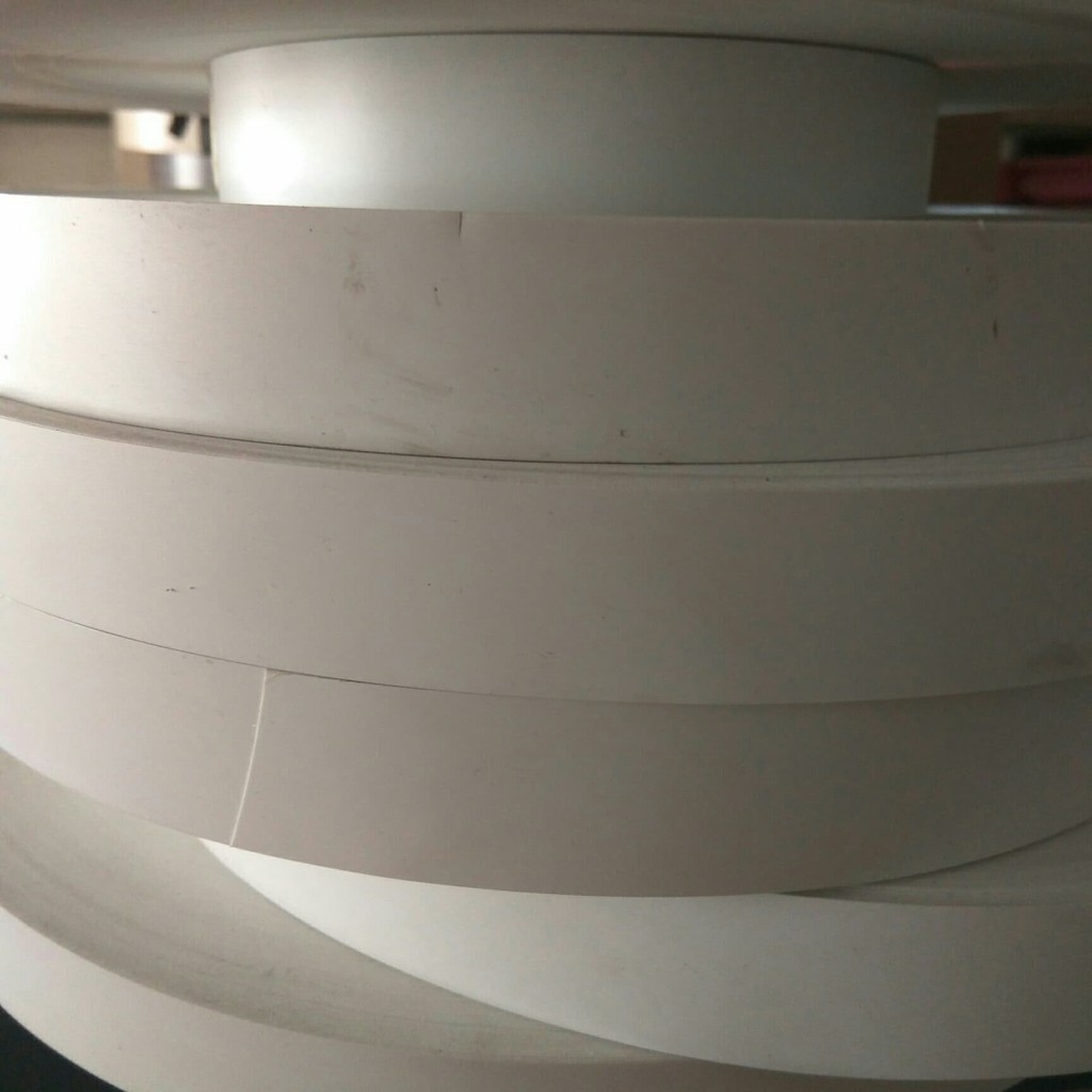 Vinyl Putih ukuran 25mm tebal 0.3mm untuk melapisi pinggir / sisi tebal plywood(multiplek) ambalan, pintu, dllHarga di atas untuk pembelian per meterminimal pembelian 5 mtr dan harus kelipatan 5 mtr