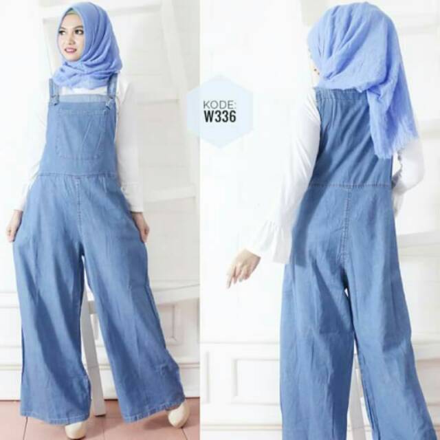 Jumpsuit jeans bahan tebal, tidak kaku, halus, ringan dan adem dipakai. All size panjang 135-140cm, lingkar dada 100cm, lingkar pinggul 96cm, lingkar kaki 68cm. Tersedia warna biru muda dan biru tua.