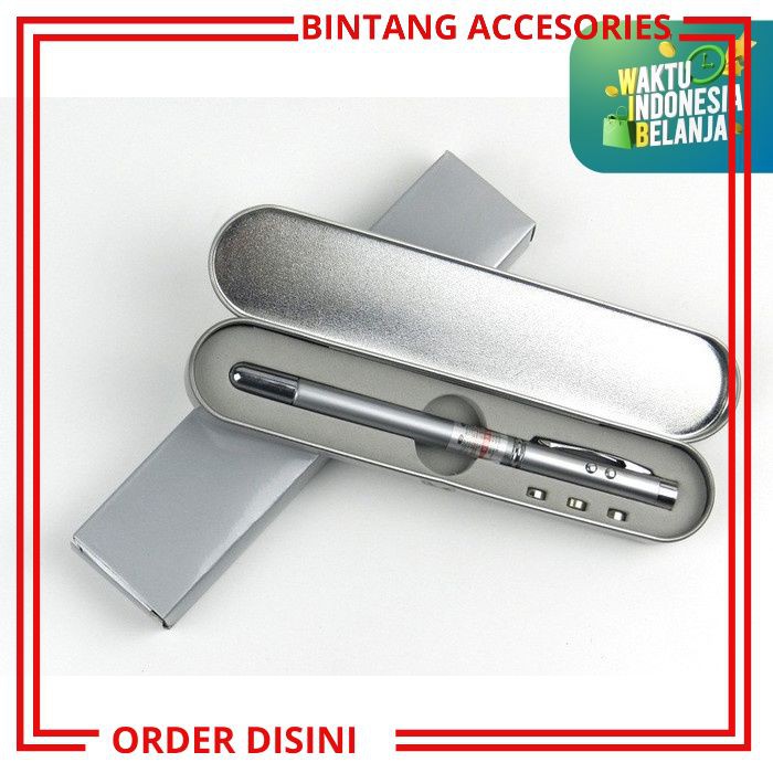 Pena dengan 5 macam fungsi ini hadir dengan design premium. Dapat digunakan sebagai laser pointer, stik komando, senter dan pena.