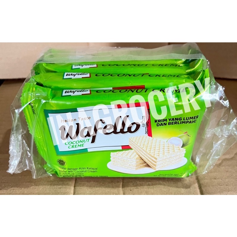 Roma Wafello adalah biskuit wafer isi krim cokelat yang nikmat. Dibuat menggunkan bahan berkualitas sehingga menghasilkan biskuit yang lezat untuk dinikmati. Dibuat dengan beberapa lapis wafer dengan isian krim cokelat di antara wafer dengan tekstur renyah. Krim cokelat dengan rasa manis yang khas berpadu dengan renyahnya wafer menghasillkan kenikmatan yang sempurna. Dikemas menggunakan kemasan plastik khusus untuk menjaga kualitas dari biskuit wafer. Cocok dijadikan cemilan ketika berkumpul bersama dengan keluarga atau teman. Dapat dinikmati bersama dengan minum teh atau kopi di pagi atau sore hari. Selalu miliki Roma Wafello Wafer sebagai stock cemilan anda.