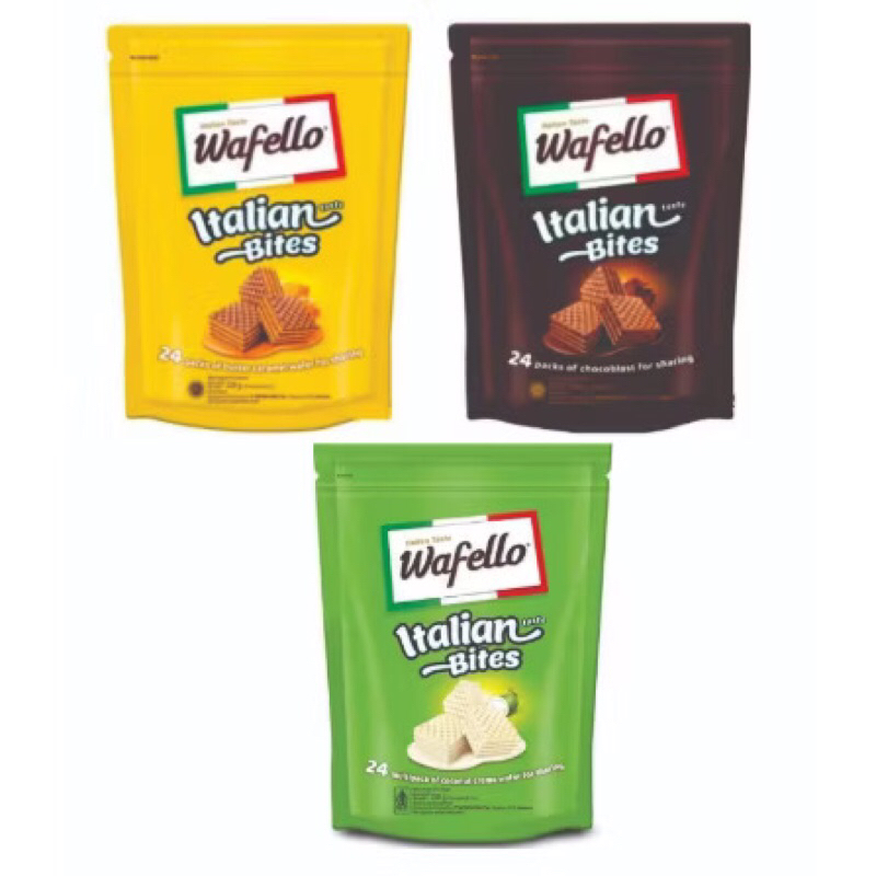 ROMA WAFELLO WAFER ITALIAN BITES, Kemasan pouch isi 24 packs 234 gr, EXP November 2025, Wafer caramel yang caramelnya terlalu enak untuk dilupakan,