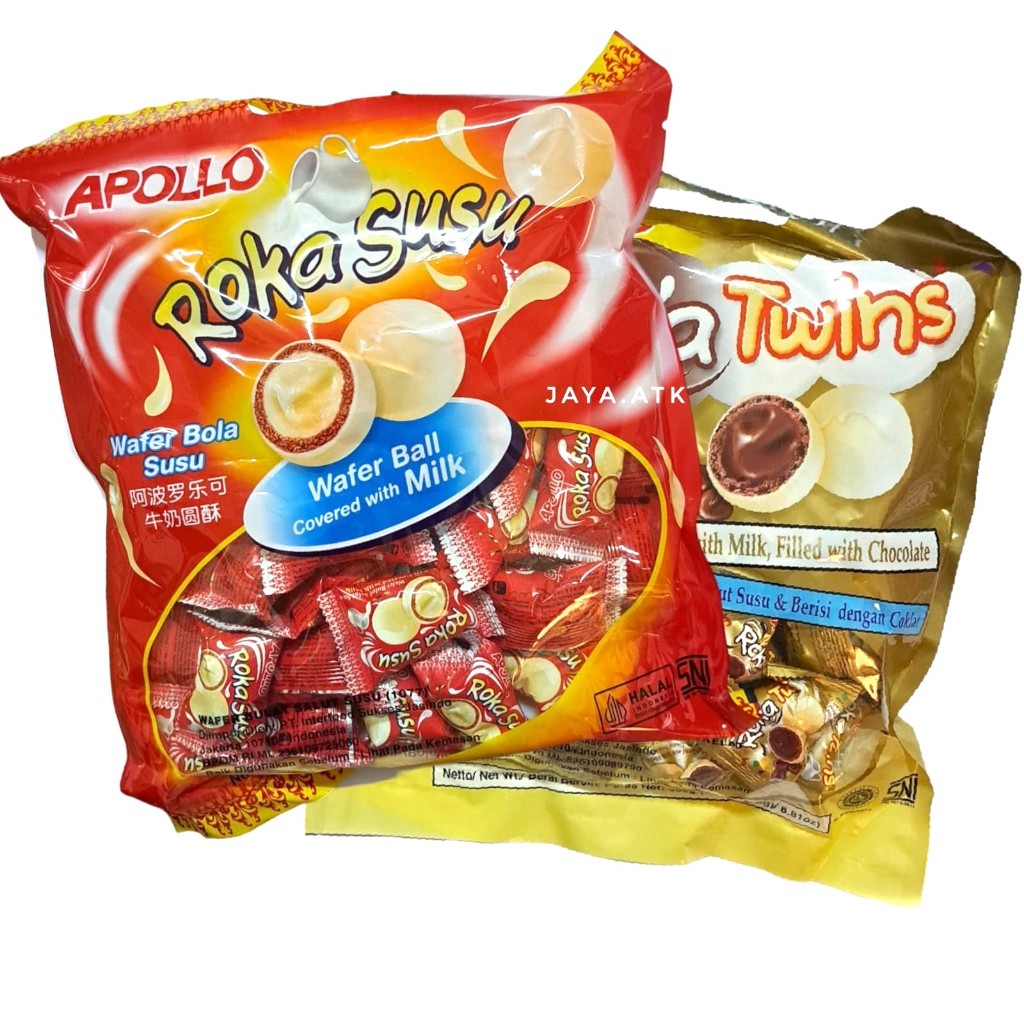 WAFER COKLAT BOLA ROKA SUSU TWIN 250GRAM APOLLO WAFER BALL 50 PCS