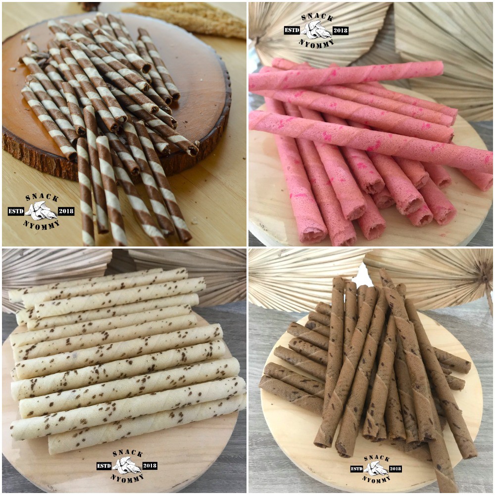 Pokoknya kalian pasti ketagihan deh nyemil wafer roll dari snack nyommy.
