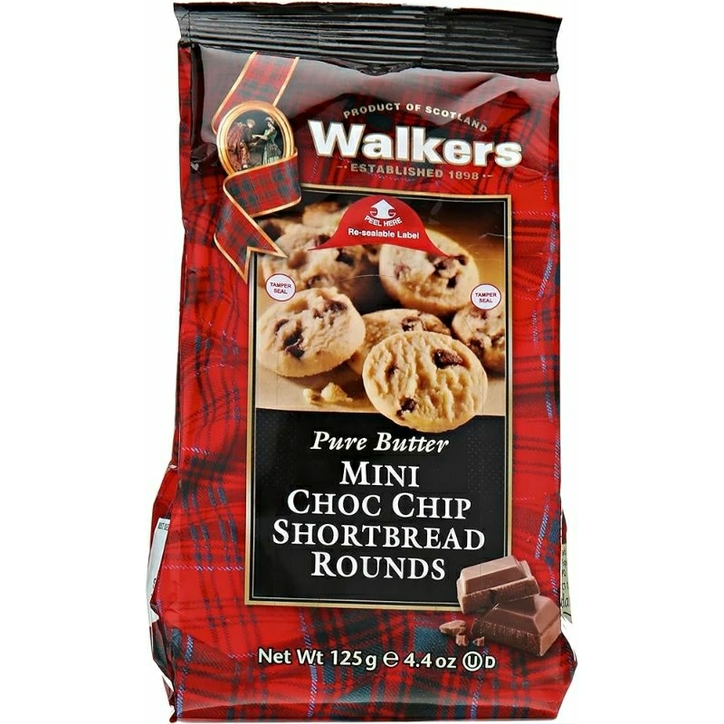 Walker's Mini Choc Chip Shortbread combines a tasty mix of crumbly shortbread and smooth chocolate chips. Packed with 33 bite-sized mini chocolate chip shortbread rounds, this bag pack format is perfect for sharing.